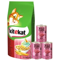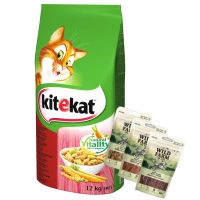 ( αριθμός προϊόντων: 8 )KITEKAT Ξηρή τροφή για γάτες με μοσχάρι και λαχανικά 12kg + WILD FARM cat treat mix 3x50g
