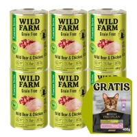 ( αριθμός προϊόντων: 90 )WILD FARM Premium Grain Free Wildboar and Chicken 6x400g - τροφή για γάτες χωρίς σιτηρά + PRO PLAN τροφή για ενήλικες γάτες 400g - τυχαία αποστολή