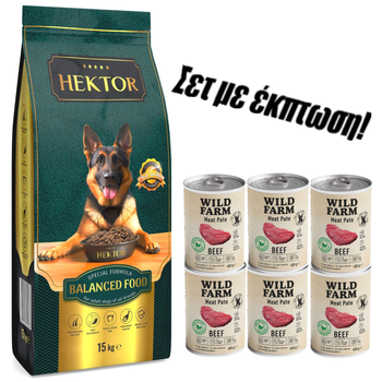 ( αριθμός προϊόντων: 198 )HEKTOR BALANCED Adult 15kg + Wild Farm Pate Beef 6x400g τροφή για σκύλους χωρίς γλουτένη